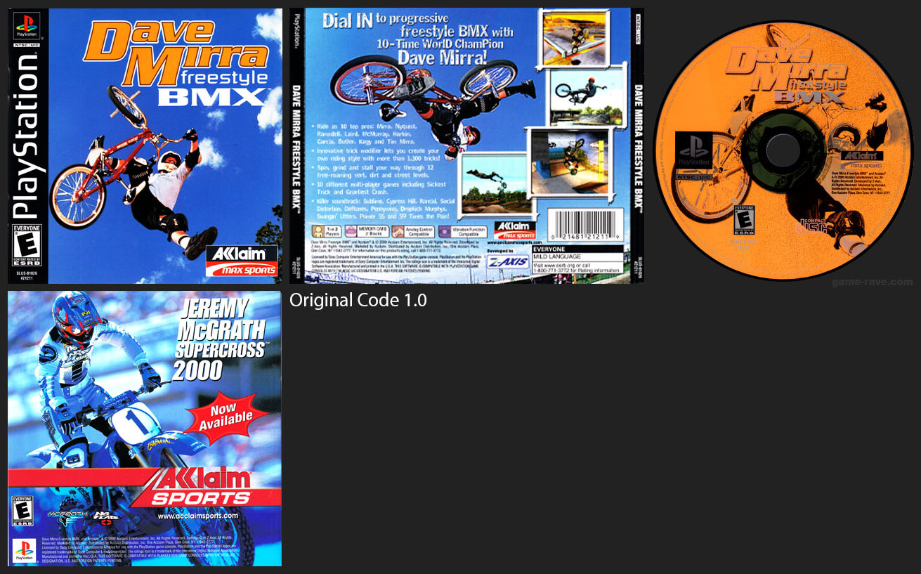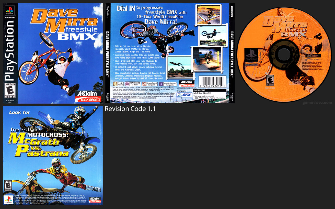 Dave Mirra’s original print got a code revision update. Thankfully, it’s an easy tell. First, open the case and confirm the manual’s back cover is for McGrath Vs. Pastrana. 2nd, flip the disc over and look at the IFPI number in the hub. If it falls within any of these sets, it should be 1.1 – IFPI 5012-5020, 506C-507D, 50B4-50EF, 7231. Shout out to redump.org for the deets.