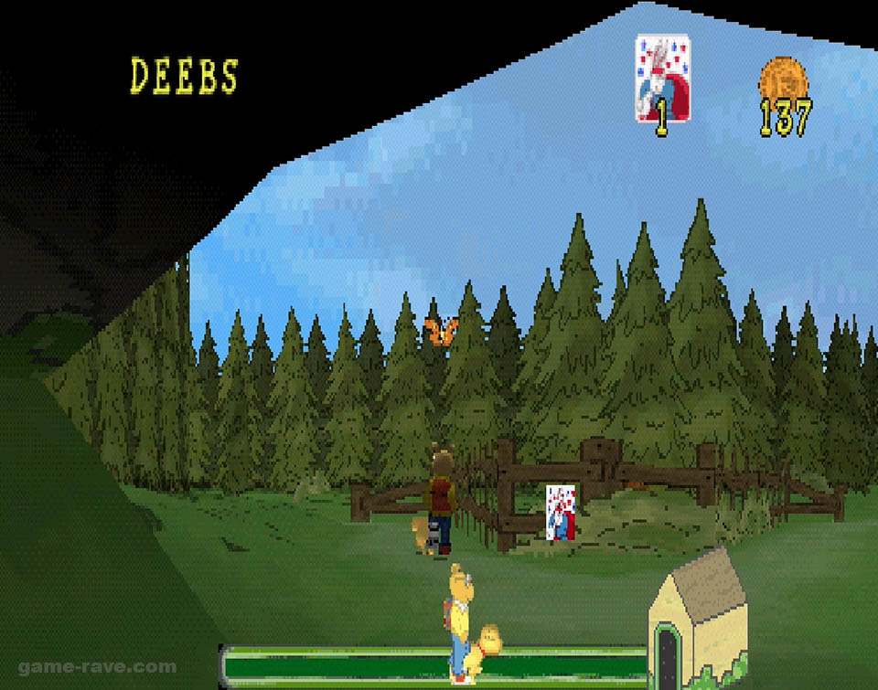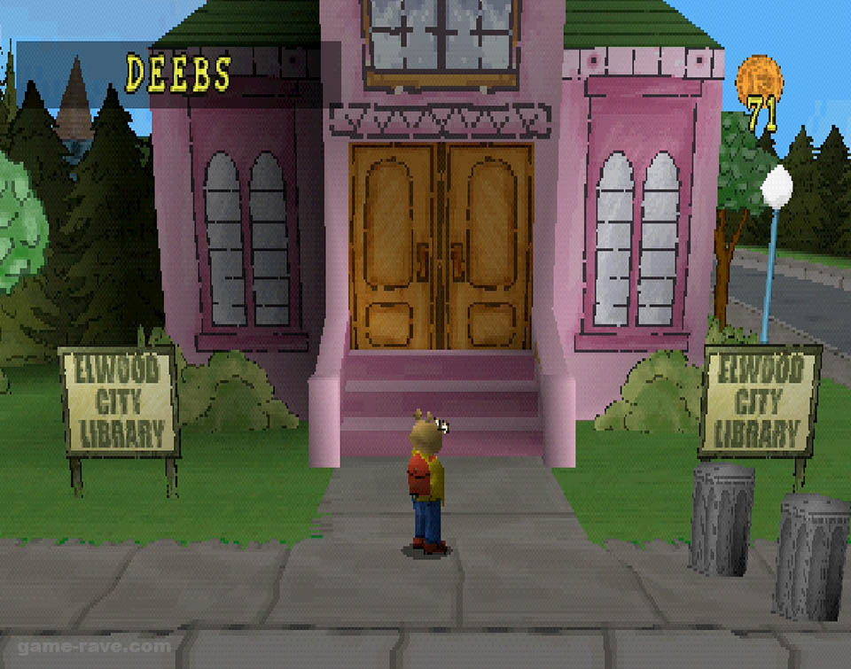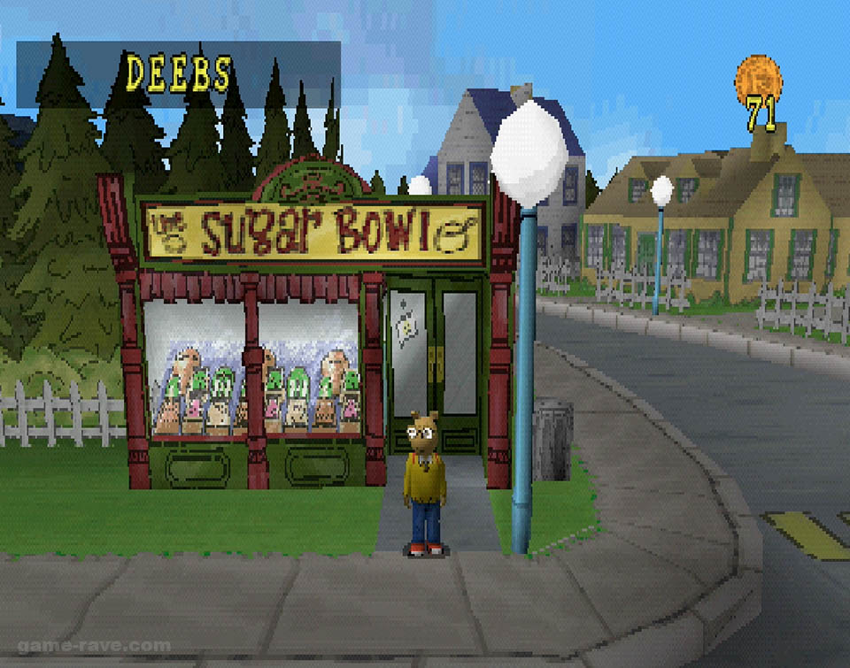 In Muffy’s yard, Arthur will need to dodge skunks and porcupines to collect enough tomatoes to make paste. After that, it’s off to his own house to help his father retrieve stolen food from the family dog, Pal. This involves chasing the pet through the backwoods behind the house while collecting Bionic Bunny cards and coins. Once he’s back in the dog house, it’s off to the cemetery to rescue your friend’s backpack. Which he conveniently dropped, taking the shortcut through the cemetery.