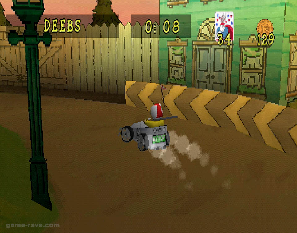 - The race track is treated like Ridge Racer’s. Each race is technically the same track; they just close off forks in the road to open other ones. Hay bundles act as the wall.