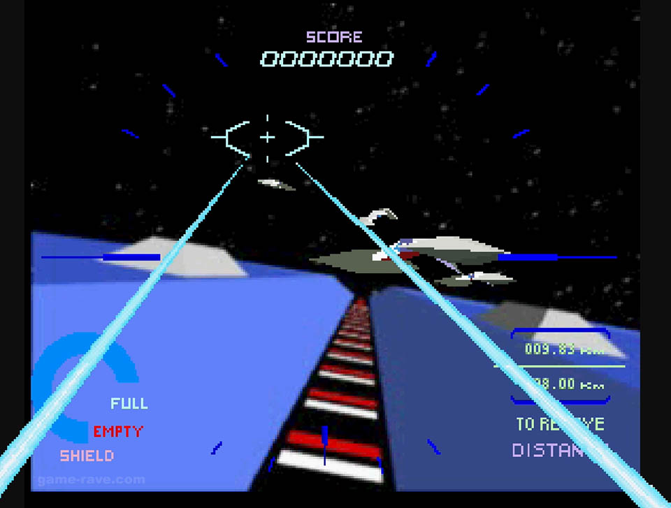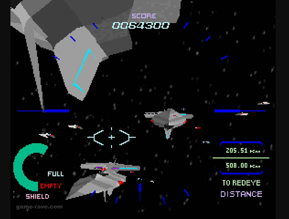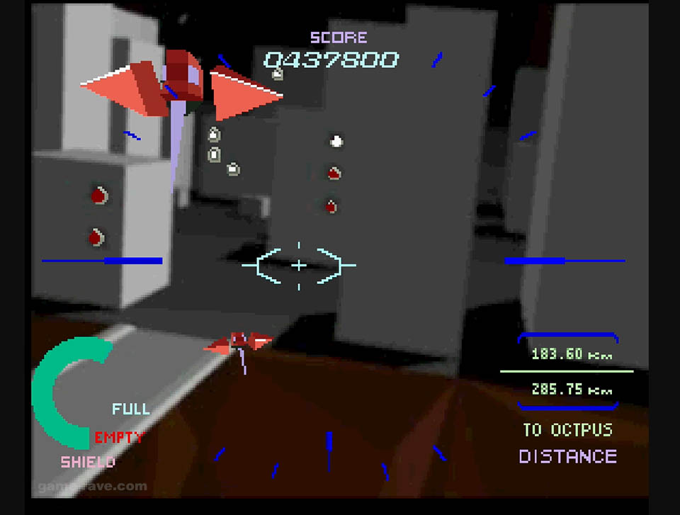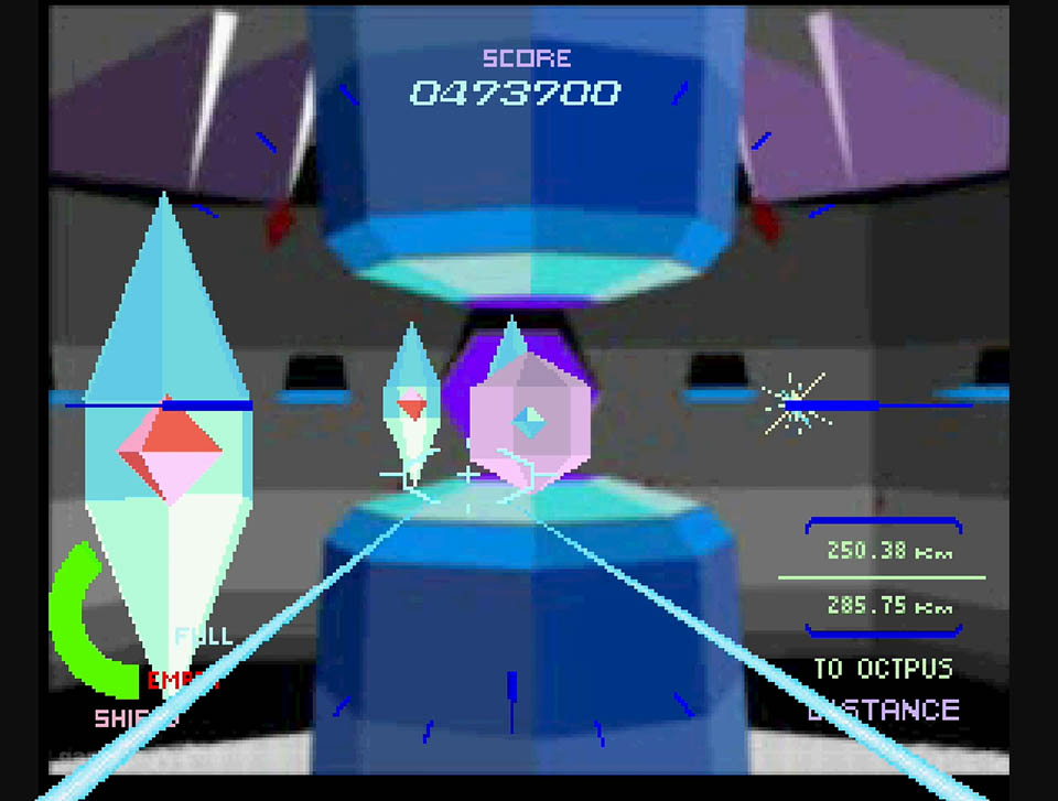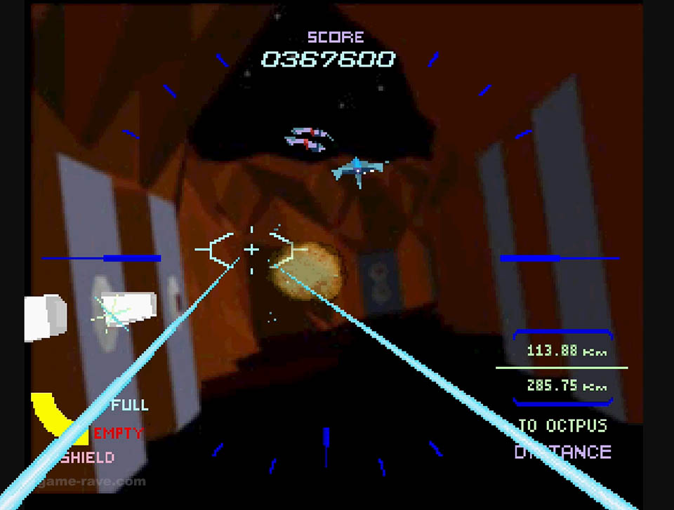 The enemies were switched to wireframes, and the full motion video-like backgrounds were reduced to solid colors and checkerboard patterns to keep things moving. Aside from some minor sections, the port was shockingly good for what it was, and it’s still super playable to this day. But there’s a particular detail that I never realized until I had played that version, more on that in a bit.