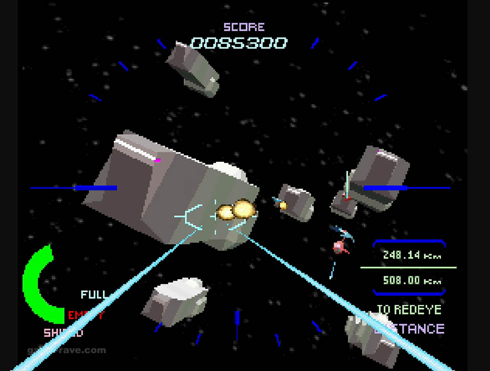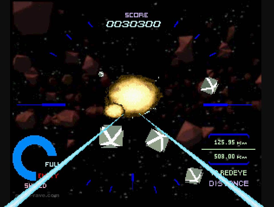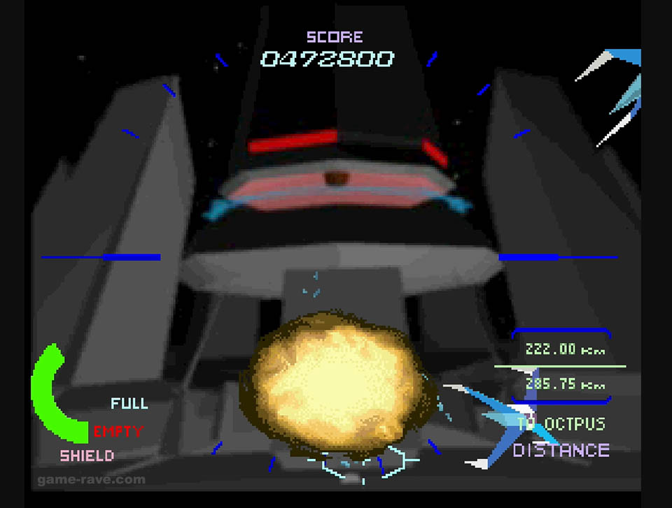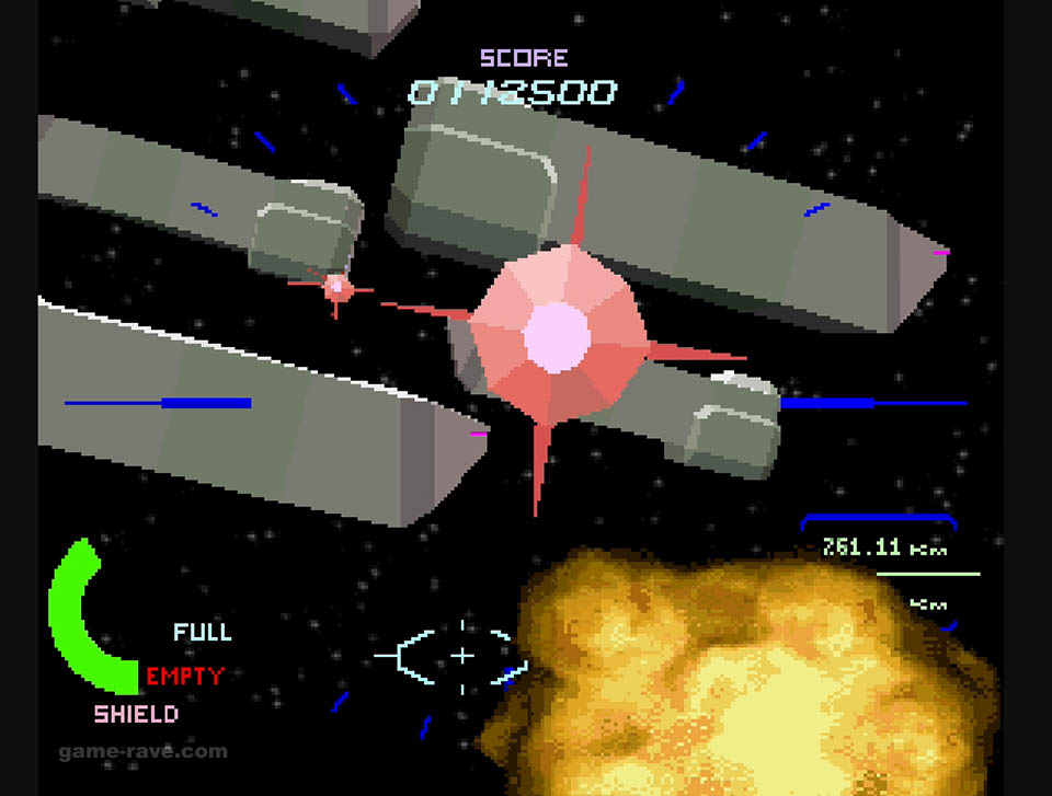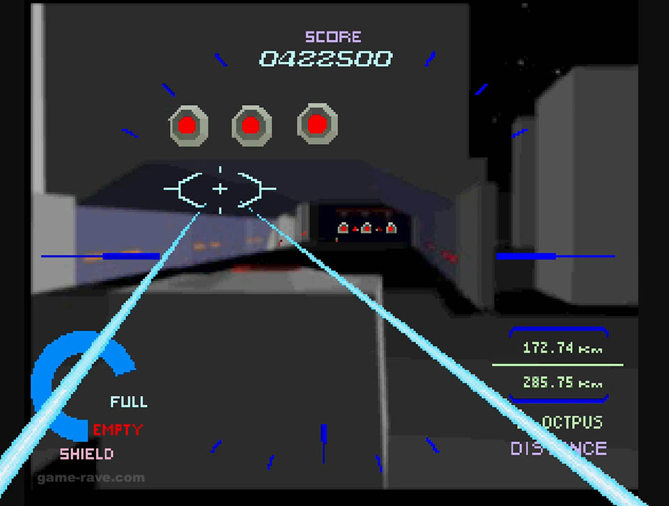 The enemies were switched to wireframes, and the full motion video-like backgrounds were reduced to solid colors and checkerboard patterns to keep things moving. Aside from some minor sections, the port was shockingly good for what it was, and it’s still super playable to this day. But there’s a particular detail that I never realized until I had played that version, more on that in a bit.